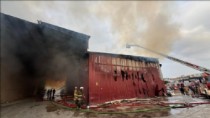 İzmir'de atölye ve depolarda çıkan yangına müdahale edi[..]