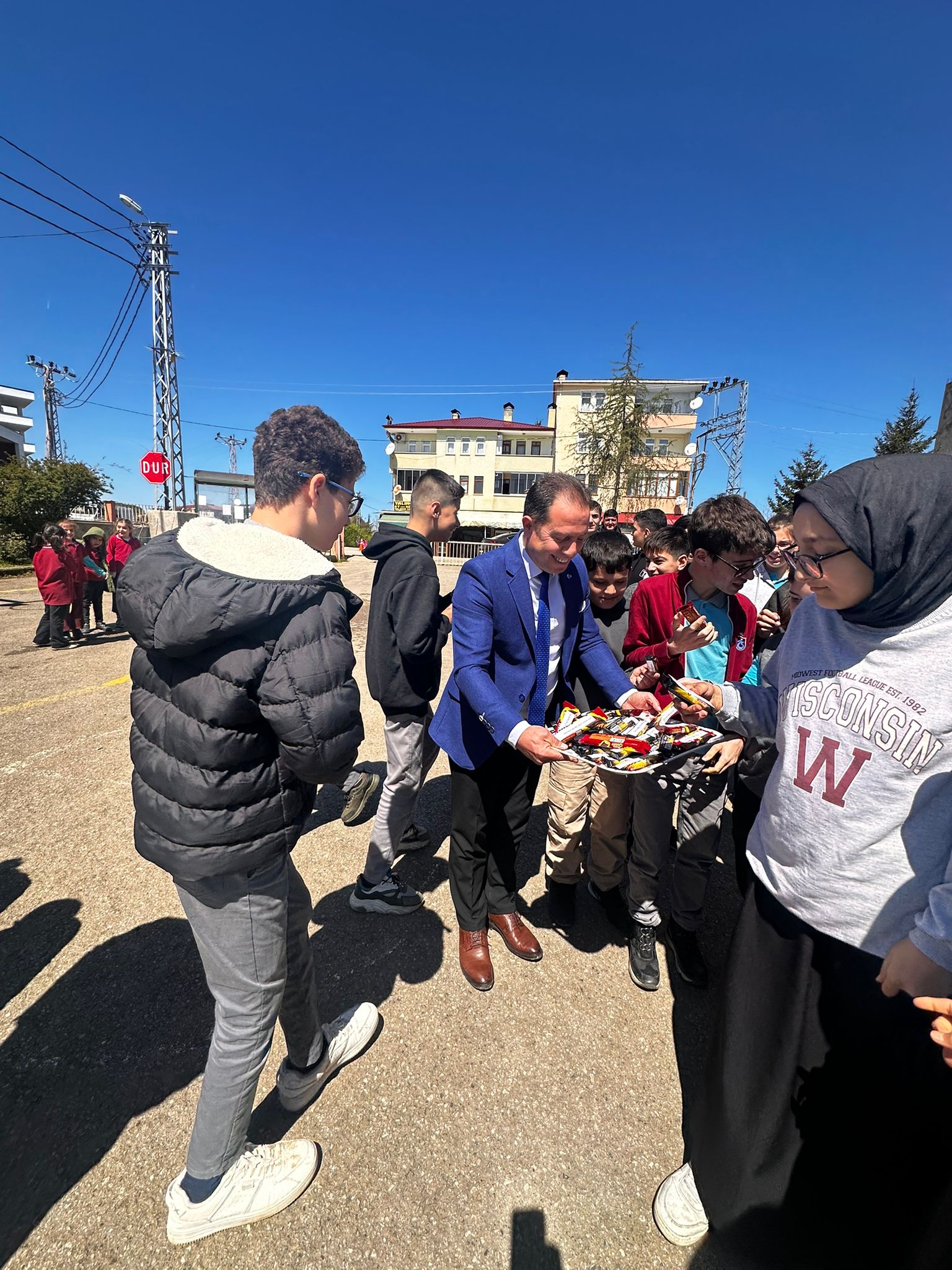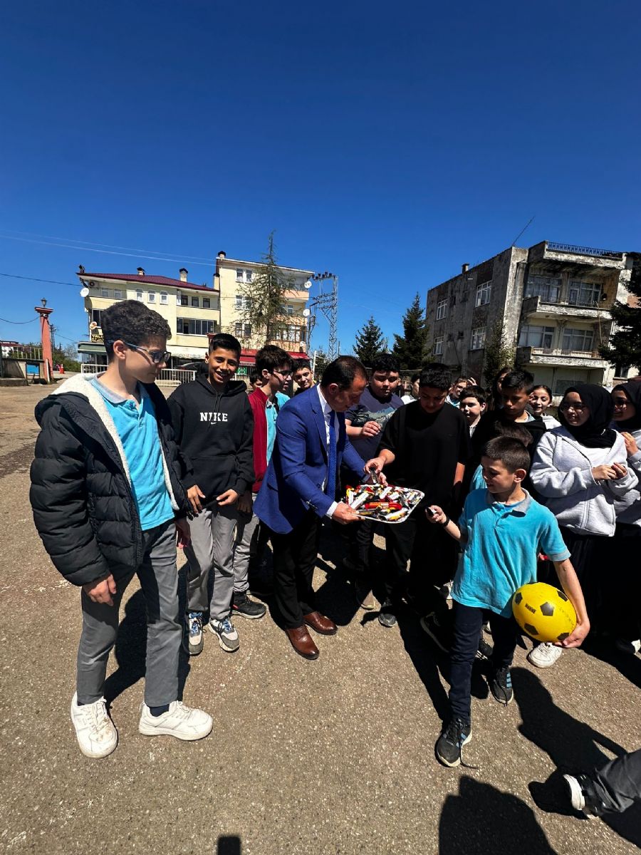 Trabzon’da Yalıncak İmam Hatip Ortaokulu’nda anlamlı ve yüzleri güldüren bir etkinliğe imza atıldı. Okul Müdürü Eray Eyüboğlu, öğrencilerin moral ve motivasyonunu artırmak amacıyla okul bahçesinde düzenlenen etkinlikte tüm öğrencilere ve okul personeline çikolata dağıttı.
